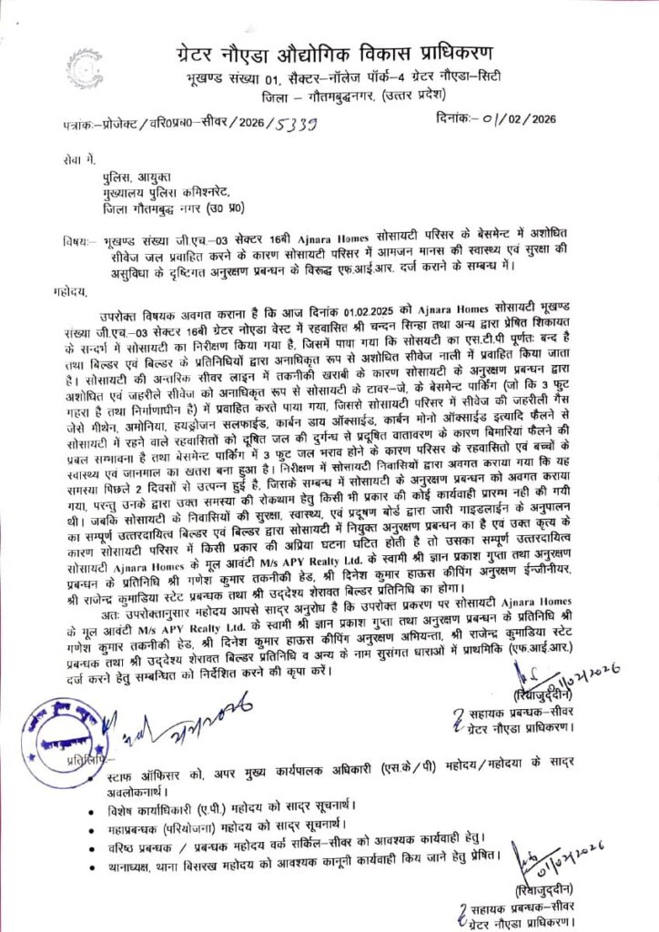 According to the Greater Noida Authority, untreated sewage contaminates water sources and leads to the rapid growth of mosquitoes and insects. This significantly raises the risk of diseases such as dengue, malaria and cholera. Taking the matter seriously, the authority has issued notices to around 200 housing societies for violating environmental norms.