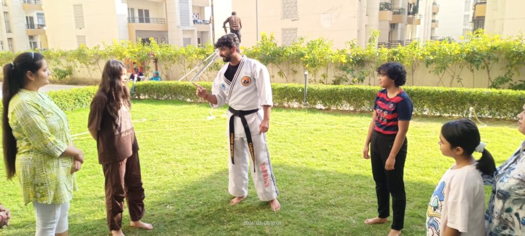 Greater Noida West : On the occasion of International Women’s Day, a special free self-defence training session for women was organised on March 8 at Centurion Park Terrace Homes, Greater Noida West. The initiative was conducted by the AOA with the aim of empowering women and promoting personal safety.
