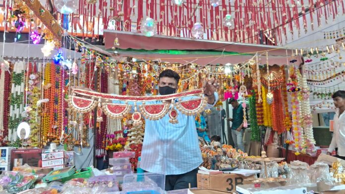 Items to decorate houses were also available on the roadside. Among these, the colours and moulds for making bandanawar, pendants and rangoli are quite attractive. Talking about Bandanwar, it is available in the market ranging from Rs 50 to Rs 1500. Along with different colours, moulds are also being sold for making Rangoli. Using which beautiful rangoli can be easily prepared in a few minutes.