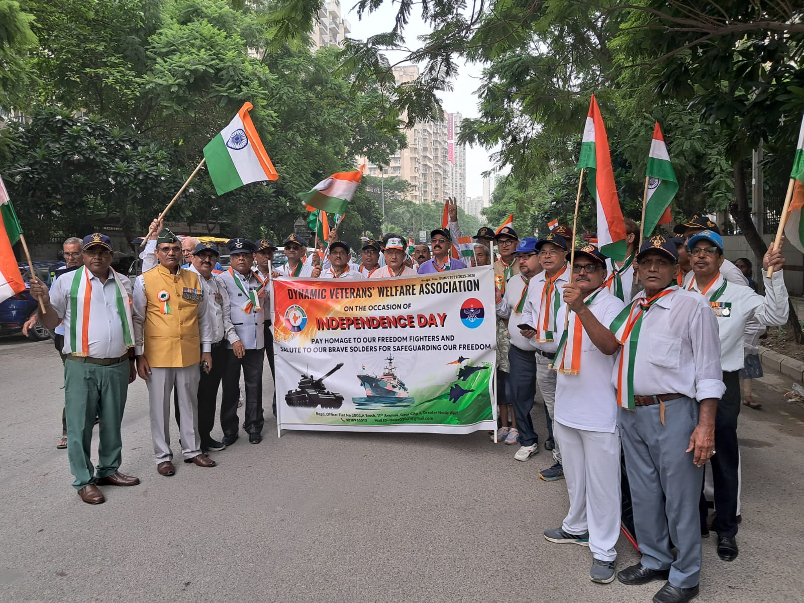 Greater Noida West: In a heartwarming display of patriotism, the Dynamic Veteran Welfare Association, an organisation of ex-servicemen from the region, came together to celebrate the 79th Independence Day with great enthusiasm.