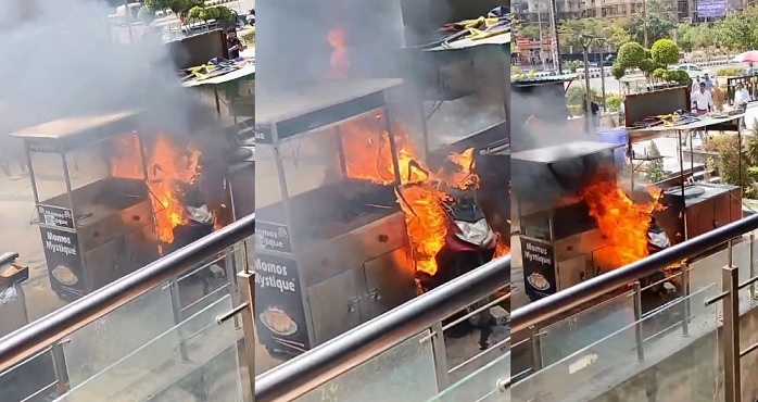 The scooter was parked between two kiosks. The flames of the fire in the scooty reached both the kiosks, but luckily the kiosk was made of steel due to which the kiosk did not catch fire.