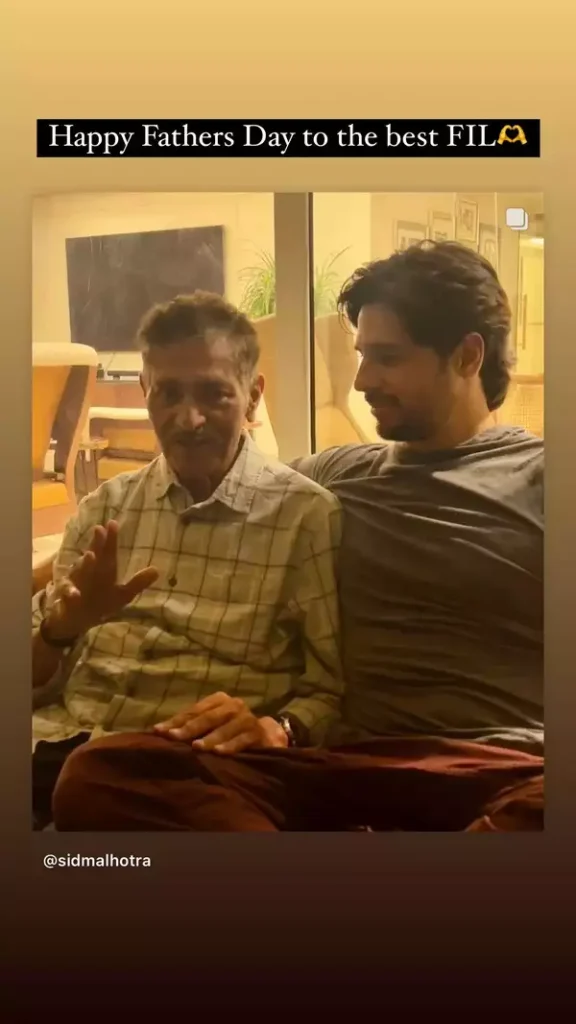 Kiara posted a photo of herself and her husband, actor Sidharth Malhotra, on Instagram with her father-in-law, Sunil Malhotra.The father and son are shown in the photo having an open discussion. “Happy Fathers Day to the best FIL,” Kiara wrote as the post’s caption.