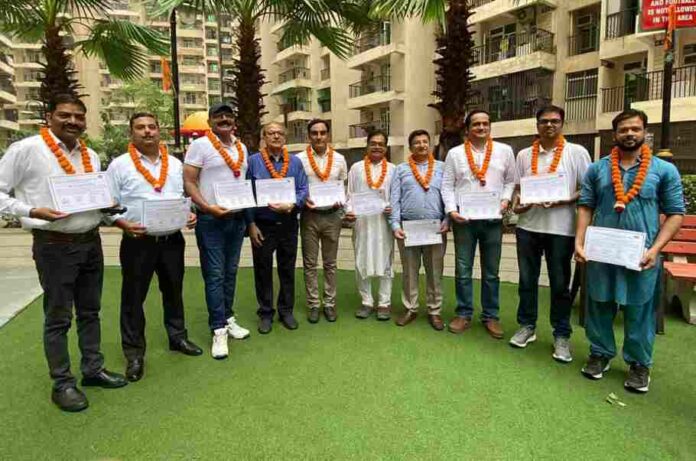 Gaur City 2: The newly formed AOA team of 11th Avenue has taken oath. All the AOA members were elected unopposed. Dushyant Sharma, President of the AOA Election Committee informed that the AOA election was to be held on July 07.