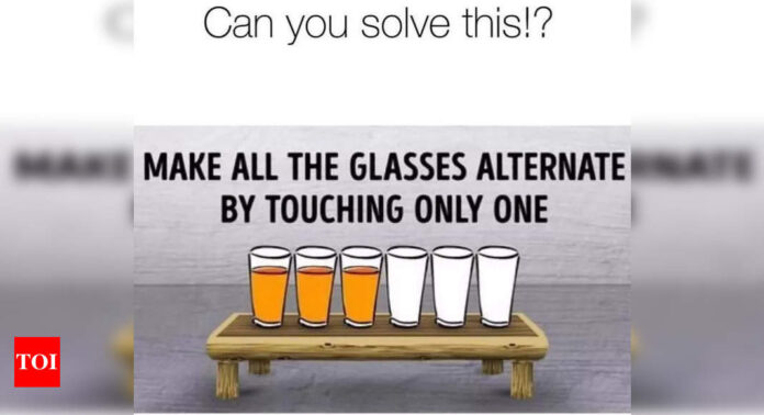 Recently, an Instagram page named ‘Optical Illusions’ shared a puzzle involving six glasses, with the first three filled and the next three empty.The task was to make all the glasses alternate using only one touch.
