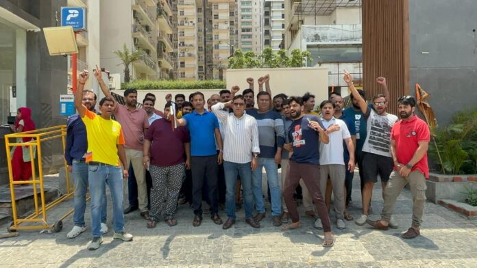 Greater Noida West: Amid the heatwave, the residents of Victory One Amara, Sector-16, Near Angel Crossing, Panchsheel Green, GNW protested on Sunday, May 19, 2024, against the maintenance and the builder as there is a dearth of problems in the society.