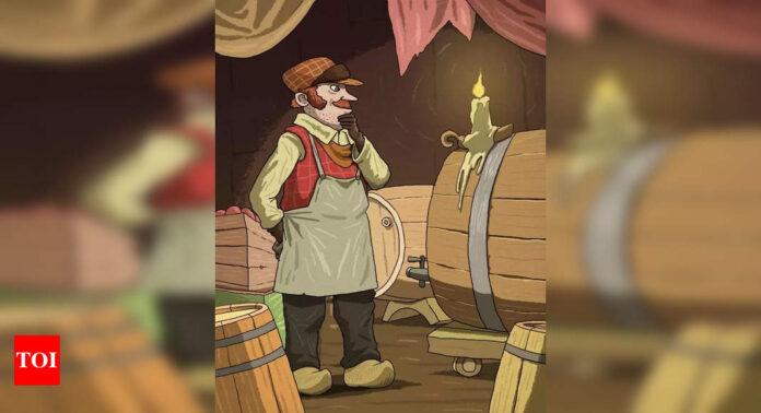 In this tricky picture, there’s a man in a wine cellar who seems worried because he’s trying to find an empty bottle to put some wine in. Can you help him locate the hidden bottle within a time limit?