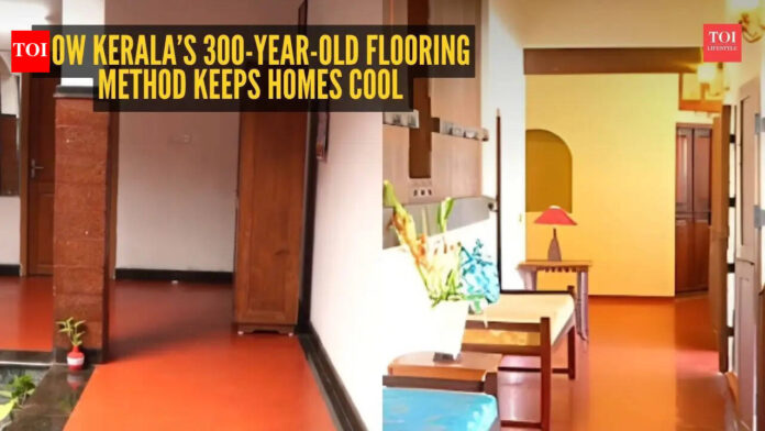 In the contemporary world, with ACs (Air Conditioners) ruling most of our households, we often forget that traditional Indian architecture had some very effective ways of ensuring a cool indoor environment naturally. Before the advent of the electricity-based methods of cooling our homes, natural means were used to keep the temperature low indoors. One such example can be seen through the practice prevalent in Kerala for the last three centuries.This conventional technique of flooring, which is popularly called Kaavi flooring, involves using a combination of materials like lime, iron oxide and water. Contrary to the contemporary flooring process which requires an extensive amount of cement and chemicals – this technique is entirely sustainable. It only uses materials that are locally sourced and contributes to a healthier environment by avoiding harmful substances. Skilled artisans apply it manually on the floors, and after it sets, they polish the surface with coconut oil for hours to achieve a smooth, glossy finish. Coconut oil enhances its glow and provides a more natural cooling effect.