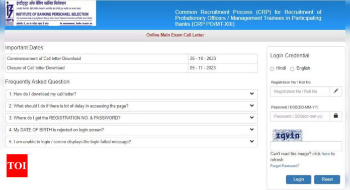 NEW DELHI: Institute of Banking Personnel Selection on Thursday released the IBPS PO Mains Admit Card 2023. Candidates who will appear in the online main examination for recruitment of probationary officers/management trainees in participating banks can download the IBPS PO Main Call Letter 2023 from the official website at ibps.in.
