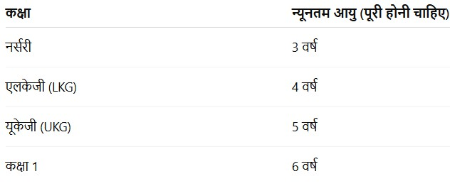 न्यूनतम उम्र सीमा (हर कक्षा के लिए)