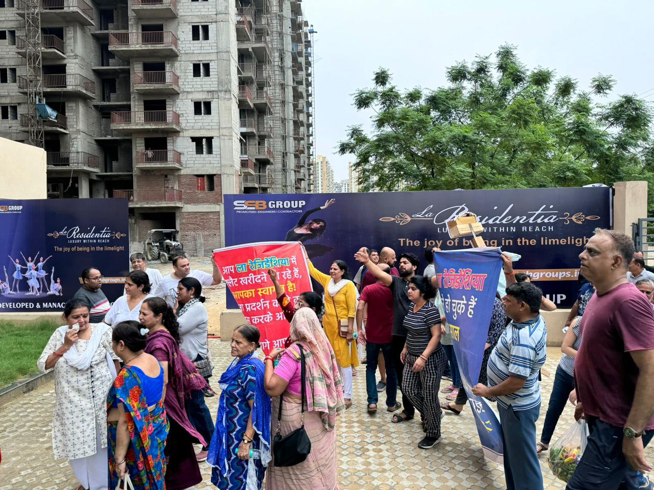 Greater Noida West: Hundreds of residents of La Residentia have announced a peaceful protest against the builder over the incomplete project, alleged false promises, and poor basic infrastructure in the society. Residents have been facing multiple issues for a long time due to unfinished construction and a lack of proper facilities. Despite raising complaints several times, they allege that the builder has repeatedly given assurances, but no concrete solution has been implemented on the ground.