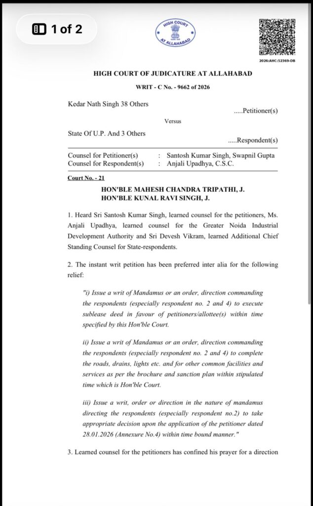Greater Noida West : Residents of Mahagun Mantra in Greater Noida West have received major relief after the Allahabad High Court directed that flat registrations must be completed within a period of three months. The order comes as a strong step towards protecting the rights of homebuyers who have been waiting for years to secure legal ownership of their properties despite making full payments.