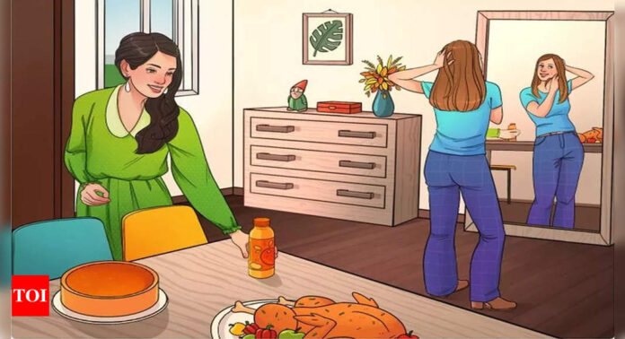 On that note, here’s a challenge from Bright Side in the form of an optical illusion image. The picture features two girls – one posing in front of a mirror, while the other stands near the dining hall. Your task is to spot the mistakes in this image, with just ten seconds to do so. If you can identify the errors, you’re a true genius.