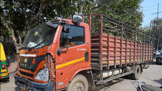 Police have detained the driver of the vegetable truck from the spot, said Amit Tomar, Sector 58 station house officer (SHO), adding a case of death by negligence will be registered after receiving a complaint. (Sunil Ghosh/HT Photo)