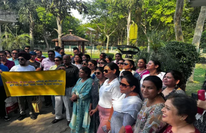 Noida: The residents of JM Aroma, Sector 75 are in full anger and they marched in protest against the current AOA in scorching heat on May 25, 2024. On Saturday, the residents of the society protested against the current AOA and their wrong policies. A hearing was to be held in the sub-registrar office in Ghaziabad, but the AOA representatives did not reach the spot. In reaction to this, about 250 residents of JM Aroma Society had to go to the sub-registrar office in the scorching heat.