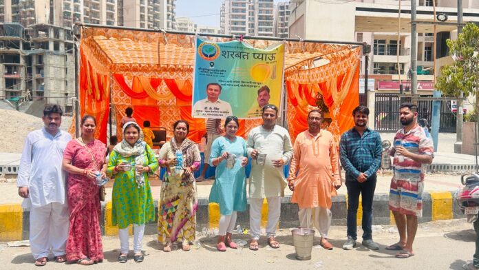 Noida: The outbreak of severe heat continues in North India and keeping this in mind, on the auspicious occasion of Nirjala Ekadashi on Tuesday, June 18, 2024, the team of Pahal Sanstha served everyone with the chabeel at many places in Gautam Buddha Nagar to provide some respite from the scorching heat.