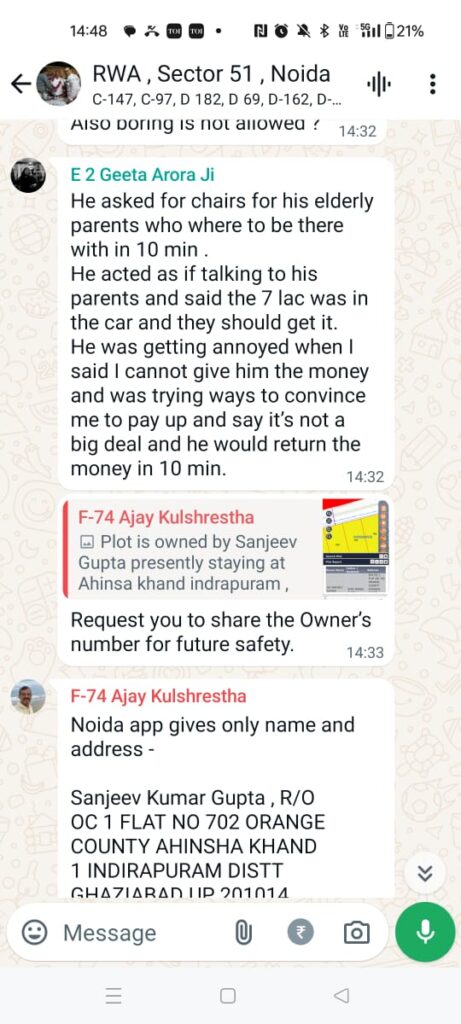 On 12th June 2024, at around 2:00 pm, in the E block of Sector 51, the bell was rung and a demand of ₹13080/- was made with the efforts by taking the educated and intelligent women living in the sector into confidence. But as the woman was wise and intelligent, she did not fall in their trap.