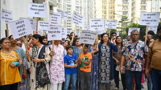 Residents of Antriksh Golf View 2 in Sector 78, Noida, began a protest against the builder, Colorful Estates Private Limited, on Saturday, alleging poor maintenance and mismanagement of the housing society for the past six years.
