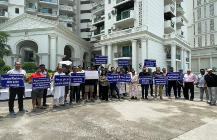 A large number of residents participated in this demonstration organized under the leadership of Sun Arista Welfare Society (SWS). It is worth noting that the project was initially launched by five directors – Dinesh Goyal, Dharamveer Singh, YK Gupta, Saurav Gupta and Sanjeev Gupta. However, now all the original directors have resigned, which remains a matter of concern for the residents.