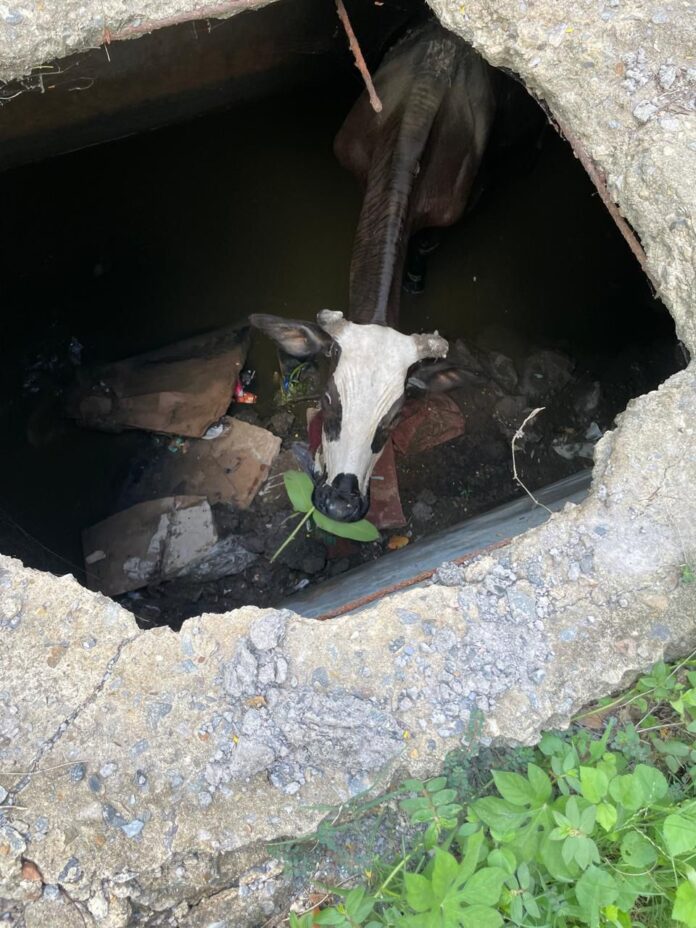 Greater Noida: Open and broken drains in Greater Noida city have become a serious threat. According to local citizen and social activist Harendra Bhati, cows are constantly falling in these drains, which has led to many deaths. In fact, on Monday morning a cow was found fallen in an open drain in the city whose video and photo has been shared by Harendra Bhati on social media. This information has been sent to the Greater Noida Development Authority.