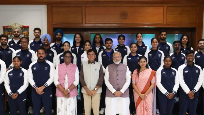 PM Narendra Modi interacts with Indian contingent for the Paris Olympics 2024 [Photo: X / PM Narendra Modi]