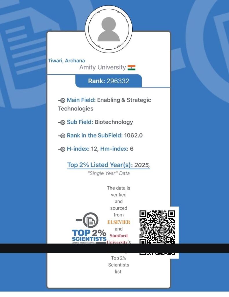 Currently serving as a Professor at the Amity Institute of Biotechnology, Amity University, Noida, Dr. Tiwari is a distinguished academic with a PhD from the University of Allahabad, where she earned a gold medal and several honors.