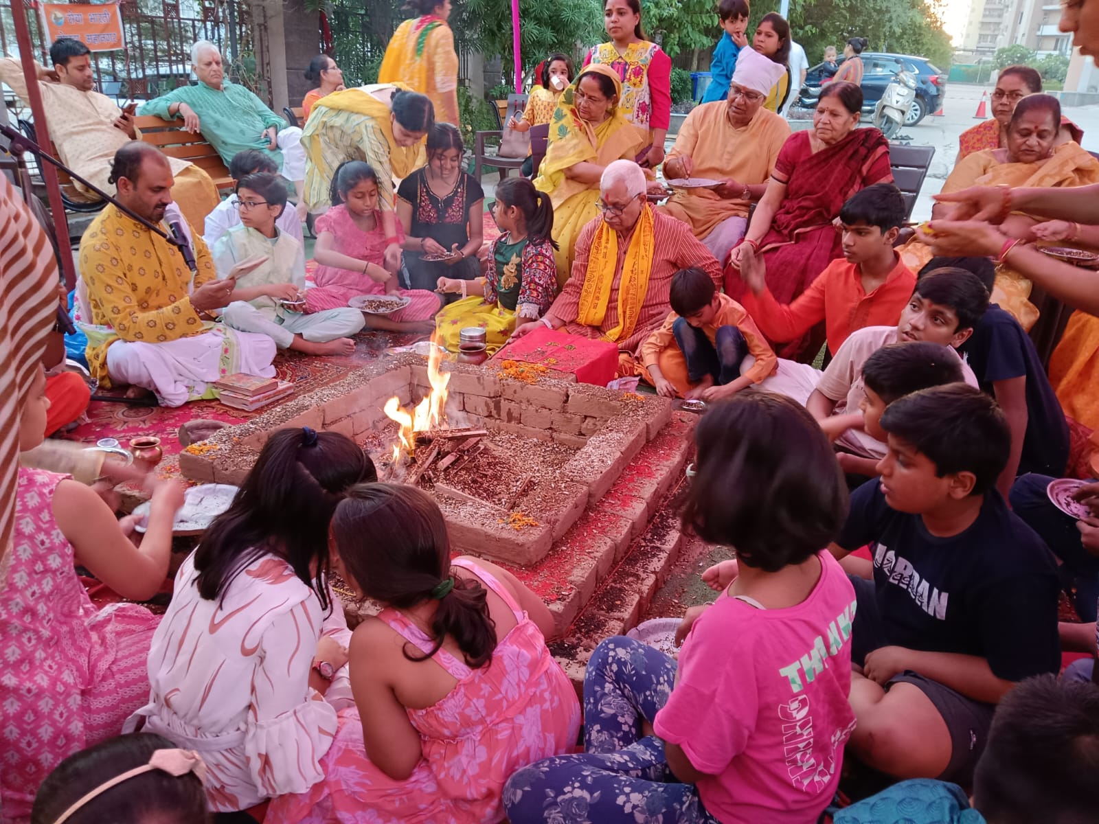 Ashok Bindlish, AOA President says, ” Young children of the society families who are associated with Sanskar Shala and who do not come to the temple regularly, along with their families, were invited to participate in the Yagya-Hawan organized for this purpose. This was done by donating one rupee only.