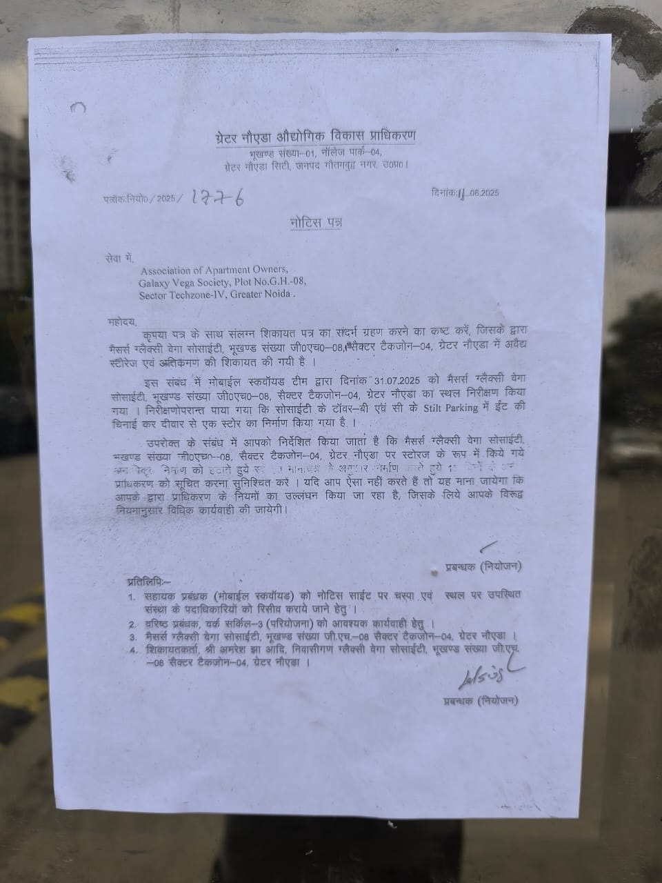 This episode is not just about Galaxy Vega Society, it reflects a larger issue across many high-rises in Greater Noida West, where encroachments, safety violations, and lack of transparency have become recurring concerns.