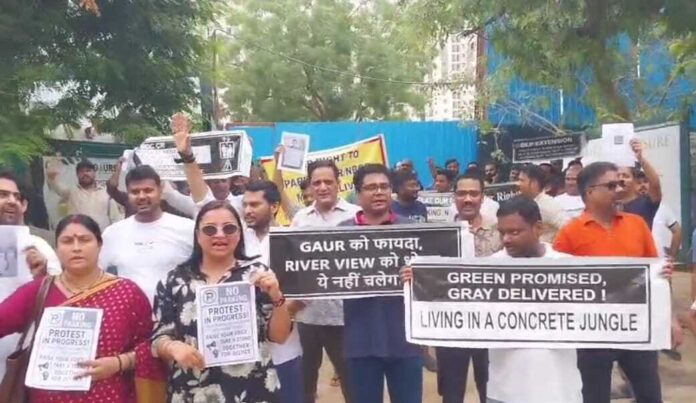 Greater Noida West: In a significant development, the residents of River View Apartments in Greater Noida West have decided to temporarily suspend their ongoing protest following a meeting with the Office of the Supreme Court-appointed Receiver (CR) held on June 28, 2025. Representatives from the Apartment Owners’ Association (AOA) and an official from NBCC were present during the meeting.