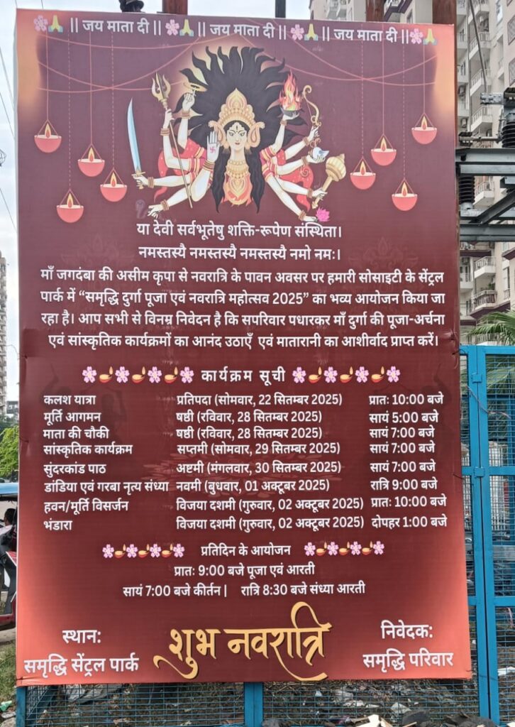 Greater Noida West : The nine-day Navratri Mahotsav 2025 at the central park of Samriddhi Grand Avenue, Techzone-4, is reaching its grand finale, enveloped in an atmosphere of faith, devotion, and cultural vibrancy. Devotees have flocked in large numbers throughout the festival, expressing their unwavering belief in Maa Jagdamba and contributing to the spiritual energy of the celebrations.