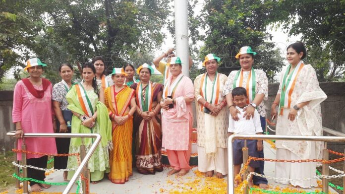 The flag hoisting was carried out jointly by Soni Jha, Gunjan Shukla, Pushpa Pathak, Gayatri Jhakamola, Pooja Rajput, Ruby Chaudhary, Neha Gupta, Rita Pehasu, Sangeeta Tyagi, Indu Sharma, and Priyanka Banyals, representing the pride and strength of women in the community.