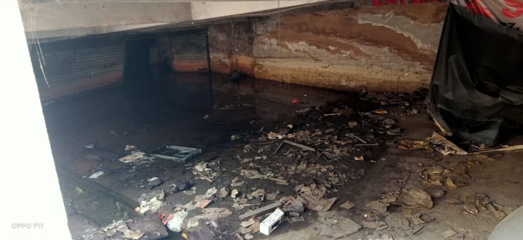 The parking building is in a deteriorating condition, with broken railings, heaps of garbage and stagnant water. Residents fear that if urgent repairs are not carried out, a major accident could occur at any time.