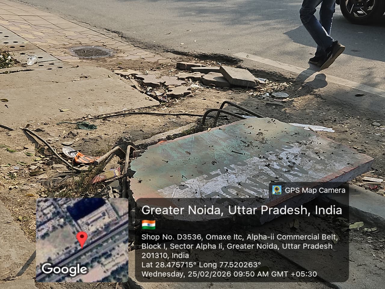 Noida: Residents of Sector Alpha 2 have raised serious concerns over deteriorating civic infrastructure, alleging that broken drain slabs and damaged signboards have turned several internal roads into potential accident zones.