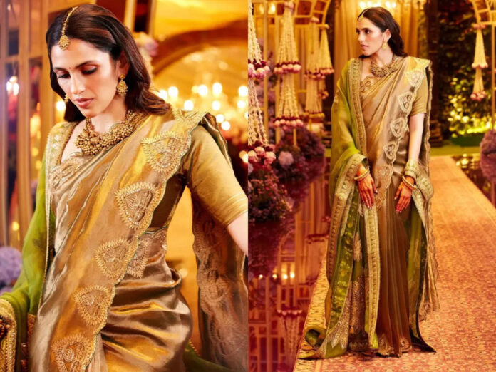 Shloka Ambani’s paan gold tissue sari is the drape of the season