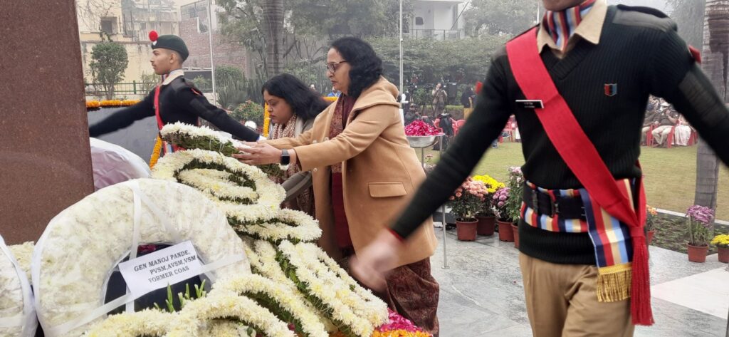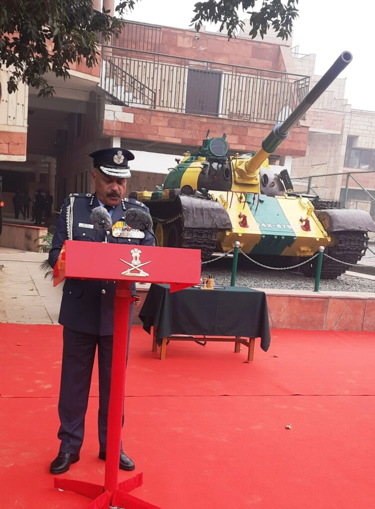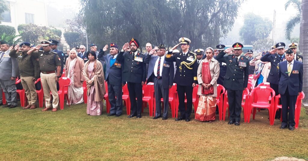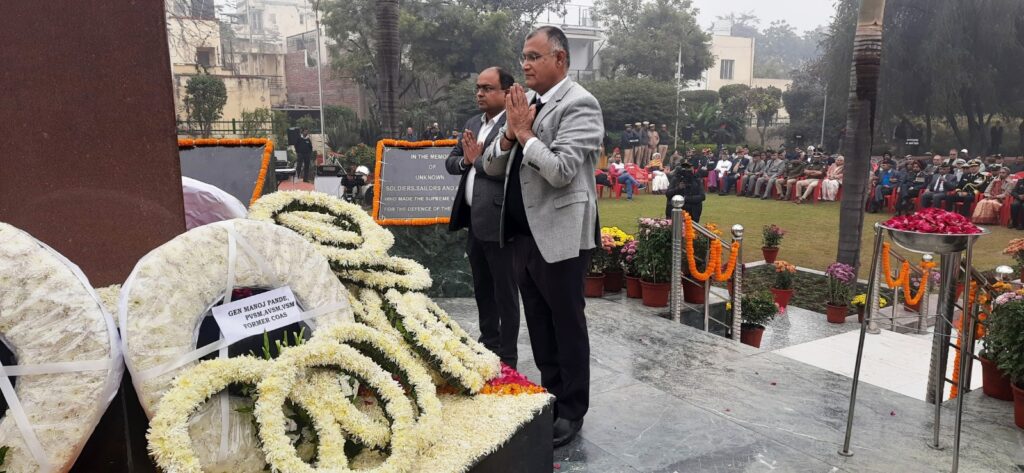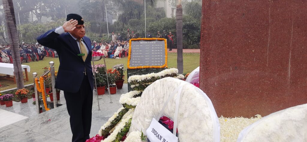 Welcoming the Chief Guest, the Chairman of Shaheed Smarak Sanstha expressed gratitude to the three Service Headquarters, Delhi Area, Signal Regiment, Noida Authority, Noida Police, Army Public School, the heads of Arun Vihar and Jal Vayu Vihar institutions, supporters, and the media for their continued support.