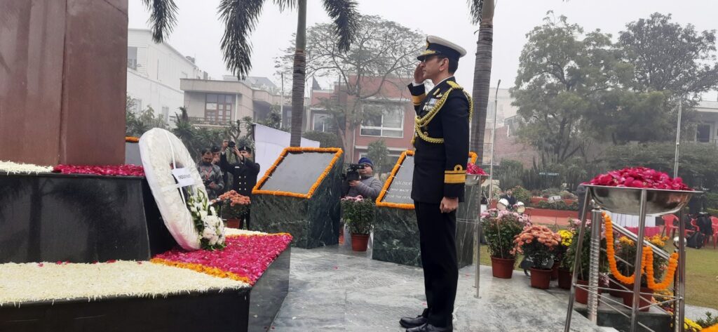 At exactly 1000 hours on Saturday, Shaheed Smarak Sanstha commemorated Vijay Divas with solemn military precision. The Chief Guest, Air Marshal Jeetendra Mishra, SYSM, AVSM, VSM, AOC-in-C, Western Air Command, laid the first wreath, followed by senior representatives of the Army and Navy and Gen Manoj Pande, PVSM, AVSM, VSM (Retd), Former Chief of the Army Staff. For the first time, a former Army Chief graced the occasion—adding historic weight to an already sacred ceremony.