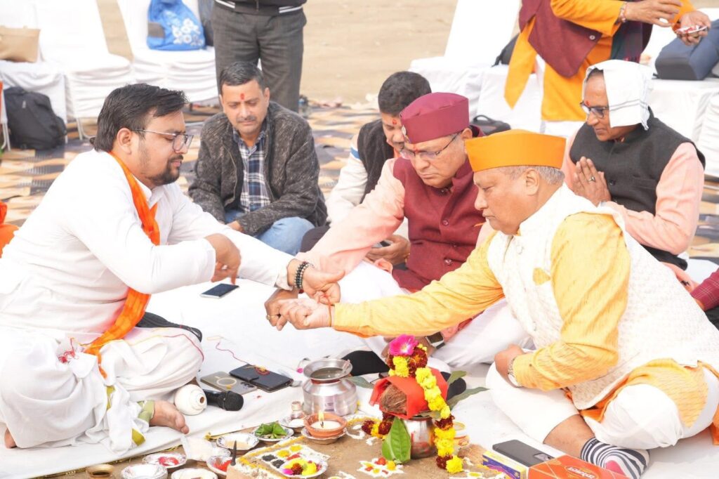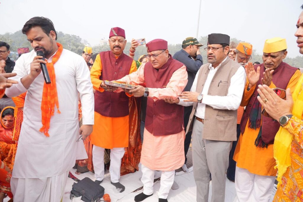 Addressing the gathering, DIG Pandey praised the efforts of the Uttarakhand community and said that Devbhoomi Uttarakhand holds a special place in his heart. He was felicitated with a shawl, a bouquet and Ganga jal by the Mahakauthig team.