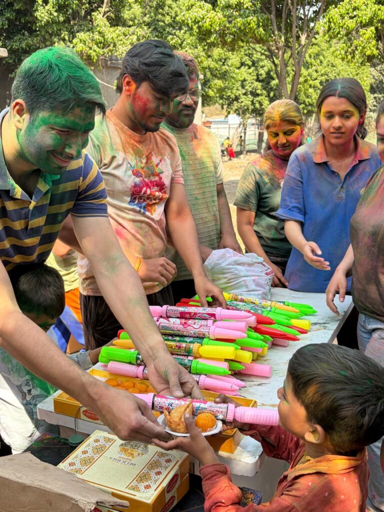 During the celebration, children played Holi with eco-friendly colors and were provided sweets, refreshments, and gifts. The event also featured music, dance, and cultural performances, creating an atmosphere of excitement and celebration. The children enthusiastically participated in the activities and enjoyed the festive spirit along with volunteers and organizers.